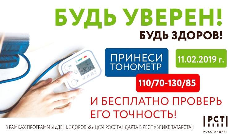 В этот день специалисты ЦСМ Росстандарта в Республике Татарстан на безвозмездной основе будут вести прием граждан для проведения контроля выходных параметров бытовых тонометров артериального давления, используемых населением.