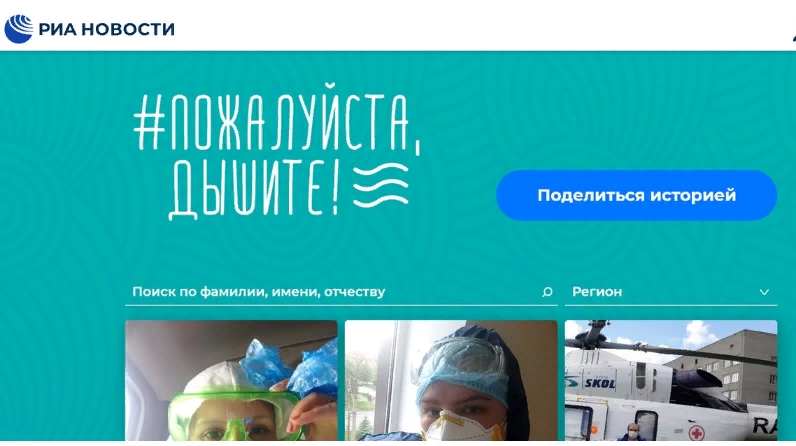 Портал "Пожалуйста, дышите!" стартовал c 8 июня и продлится до конца июня. На сайте РИА Новости – breathe.ria.ru будут публиковать фотографии и короткие истории героев, которые работают на передовой ради жизни и здоровья людей в период пандемии. Те, кто хочет рассказать о медиках, сотрудниках бригад скорой помощи, волонтерах (их близкие и друзья, просто соседи и, конечно, пациенты), могут присылать свои истории на адрес breathe@rian.ru.