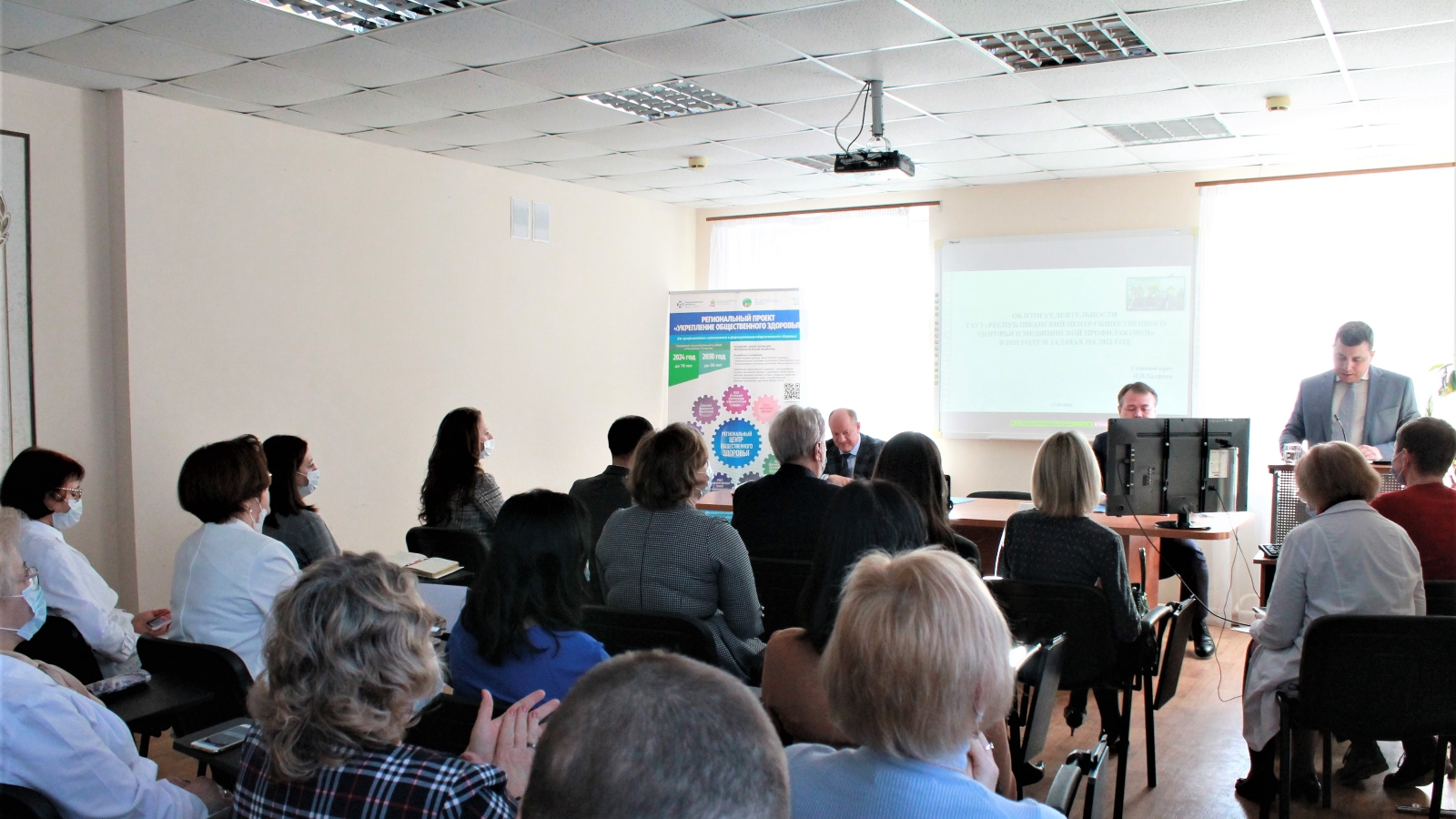 В основном выступлении Главный врач И.Н. Халфиев рассказал: об основных направлениях деятельности учреждения, итогах работы, были озвучены проблемные вопросы и задачи на 2021 год. Отдельно было акцентировано внимание на реализации региональной программы укрепления общественного здоровья и внедрении корпоративных проектов.