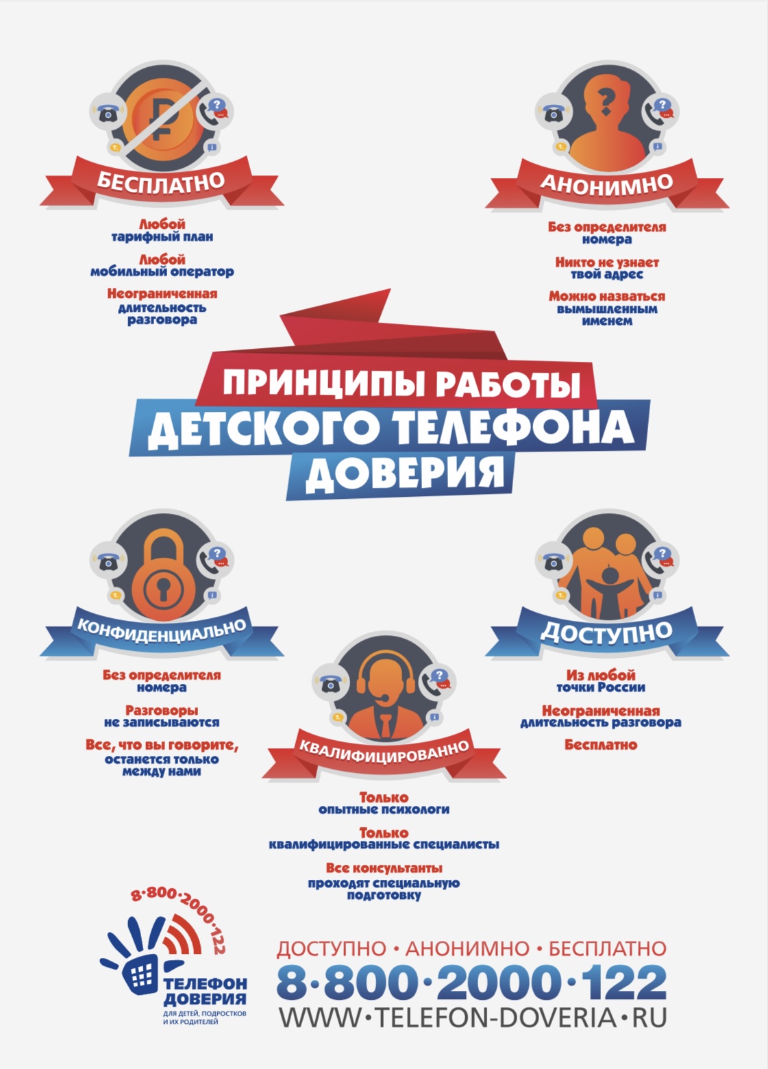 Детский телефон доверия - важный инструмент поддержки детей, подростков и их родителей, особенно в сложные периоды, связанные с внешними неблагоприятными факторами и возрастными кризисами. Главной задачей детского телефона доверия является снятие психоэмоционального напряжения, переживаний, которые испытывает абонент, и защита его от опрометчивых и опасных поступков.