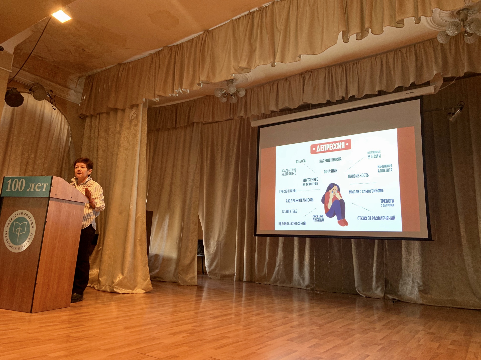 В рамках организационно-методической работы Республиканского центра общественного здоровья и медицинской профилактики по формированию здорового образа жизни у учащихся образовательных учреждений РТ 13 апреля врачи отделений провели лекции на темы «Депрессия и выход из нее» и «Здоровый образ жизни как альтернатива употреблению табачных и алкогольных изделий» для студентов начальных курсов Казанского колледжа технологии и дизайна (ККТД).