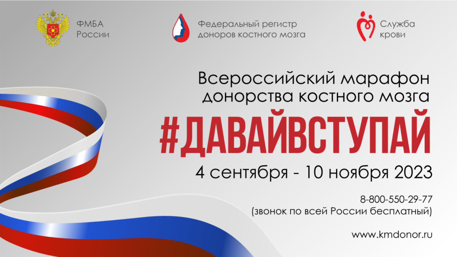 ФМБА России реализует масштабный проект – Всероссийский марафон донорства костного мозга «#ДавайВступай!», цель которого – содействие в привлечении доноров в Федеральный регистр доноров костного мозга и гемопоэтических стволовых клеток, оператором которого является ФМБА России. Во всех субъектах Российской Федерации ФМБА России проводит массовые мероприятия по пропаганде донорства костного мозга при поддержке администрации региона, федеральных ведомств, социально ответственных корпораций, волонтерских и некоммерческих организаций.