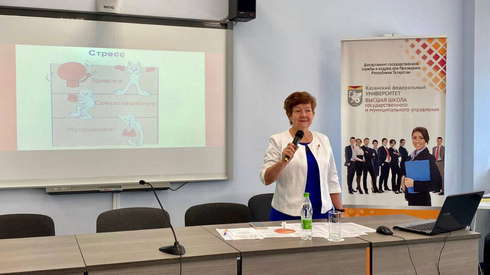В рамках реализуемой Высшей школой государственного и муниципального управления КФУ программы повышения квалификации «Современные подходы к управлению сельскими поселениями» заслуженный врач Республики Татарстан, врач-психотерапевт Республиканского центра общественного здоровья и медицинской профилактики – Гульфия Гаянова провела занятие на тему «Как сохранить здоровье в условиях неопределенности и стресса» для глав сельских поселений муниципальных районов республики.
