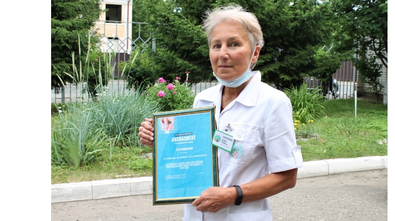 "Республика медицина профилактикасы үзәге" ДАССОның хезмәткәре Фәридә Хаҗиеваны 2020 елда Бөтенроссия #ПациентТугел узышында актив катнашканы өчен Гомумроссия халык фронтының иҗтимагый инициативаларын үстерү департаментыннан сертификат алу белән котлыйбыз.